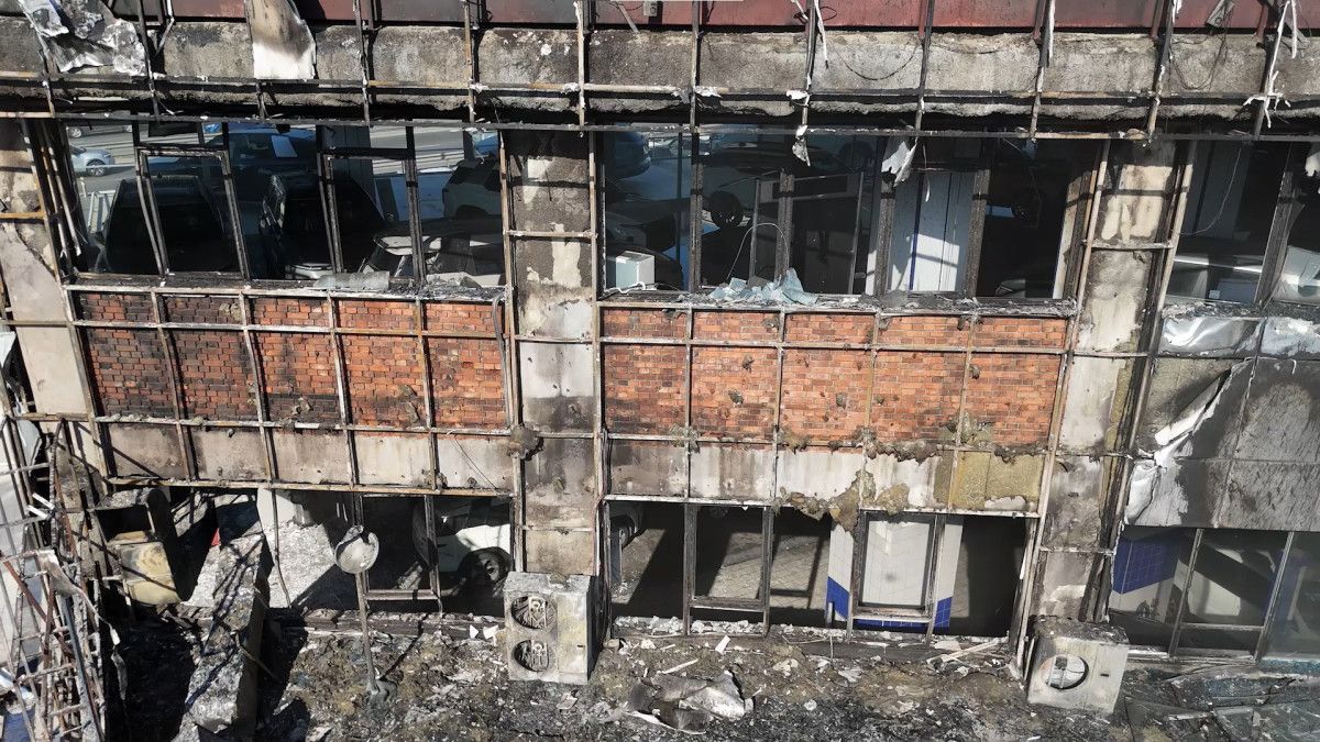 Ekiplerin yoğun çalışmasıyla yangın kontrol altına alınırken, galerinin dış kaplaması yandı.