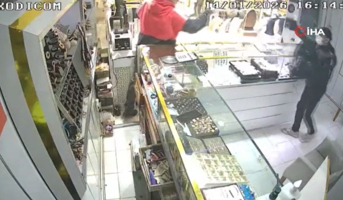 Görüntülerde, silahlı ve maskeli şüphelinin kuyumcuya girmesi, iş yeri sahibine silah doğrulttuğu anlar kaydedildi. İçerde iş yeri sahibiyle konuşan müşteri kadının panik yaşadığı görüldü.