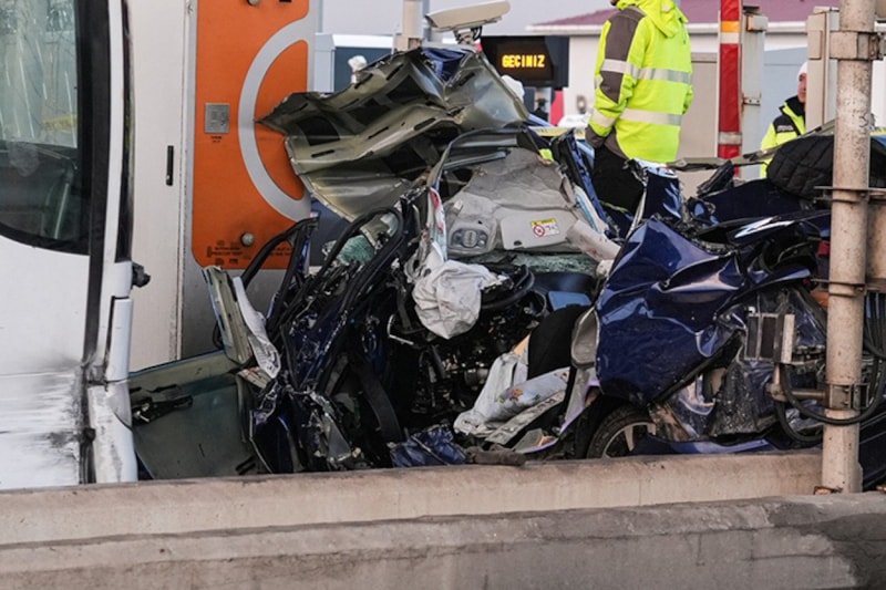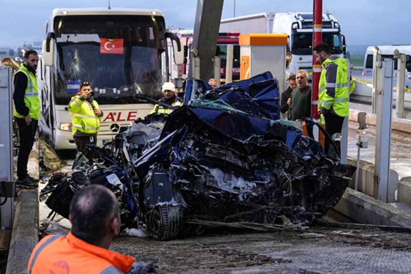 İstanbul Silivri'de Kuzey Marmara Otoyolu gişelerinde yolcu otobüsünün çarptığı otomobilde bulunan 2 kişi yaşamını yitirdi, 1 kişi yaralandı.