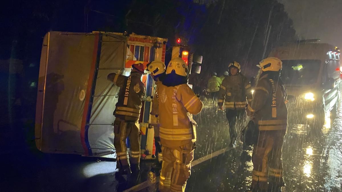 İstanbul'da saat 20.20 sıralarında Hasdal - Kemerburgaz yolu Hasdal mevkiinde, Yakup T. (62) idaresindeki 34 GBP 20 plakalı tekstil malzemesi yüklü kamyon, yağmurun etkisiyle kayganlaşan yolda kontrolden çıkara yol kenarındaki toprak alana girdi.