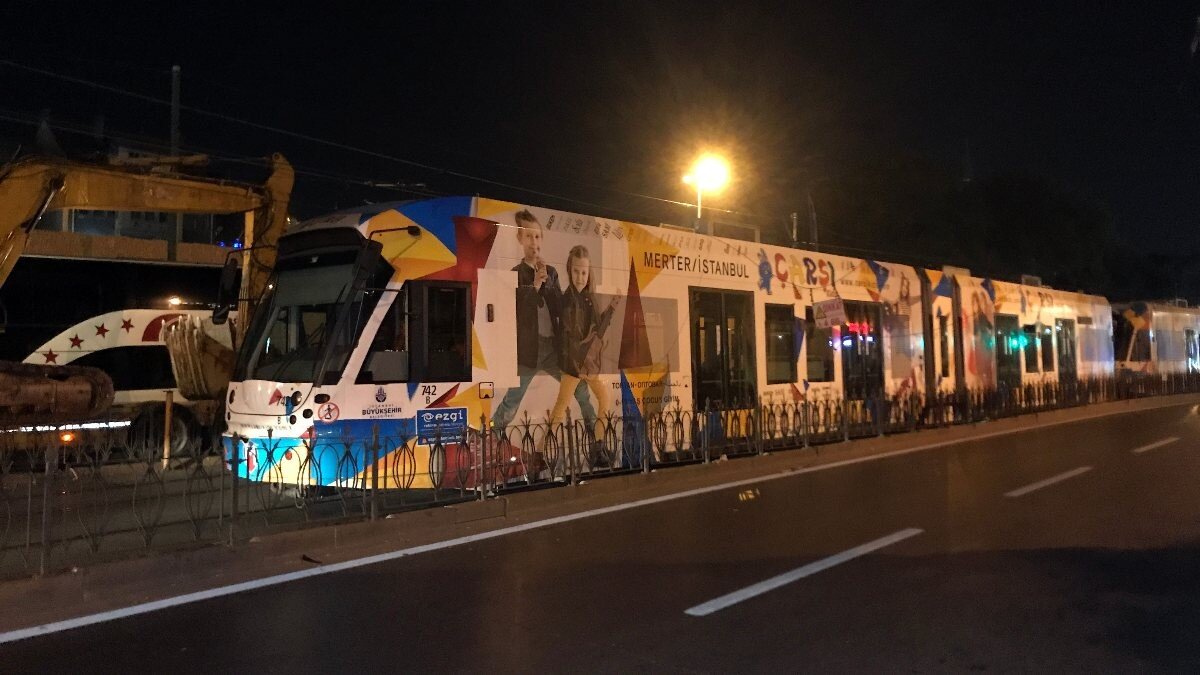 İstanbul'da, tramvaya enerji sağlayan elektrik hattındaki kablolarda tır üzerindeki iş makinasının çarpması sonucu kopmalar meydana geldi.