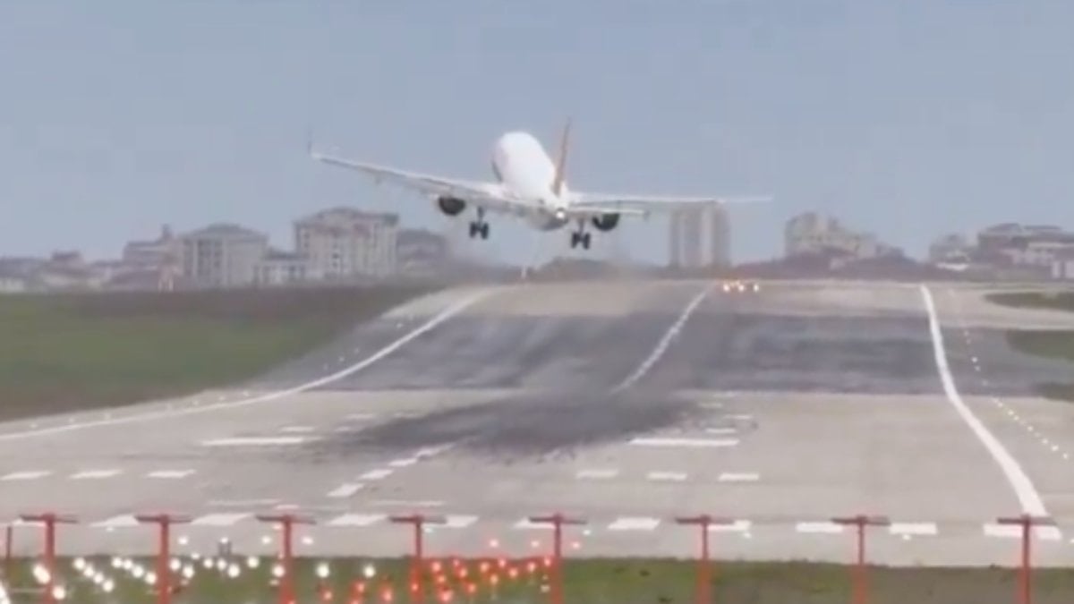- İstanbul'da şiddetli lodos nedeniyle bir uçak Sabiha Gökçen Havalimanı'na iniş yapamayıp pisti pas geçti.