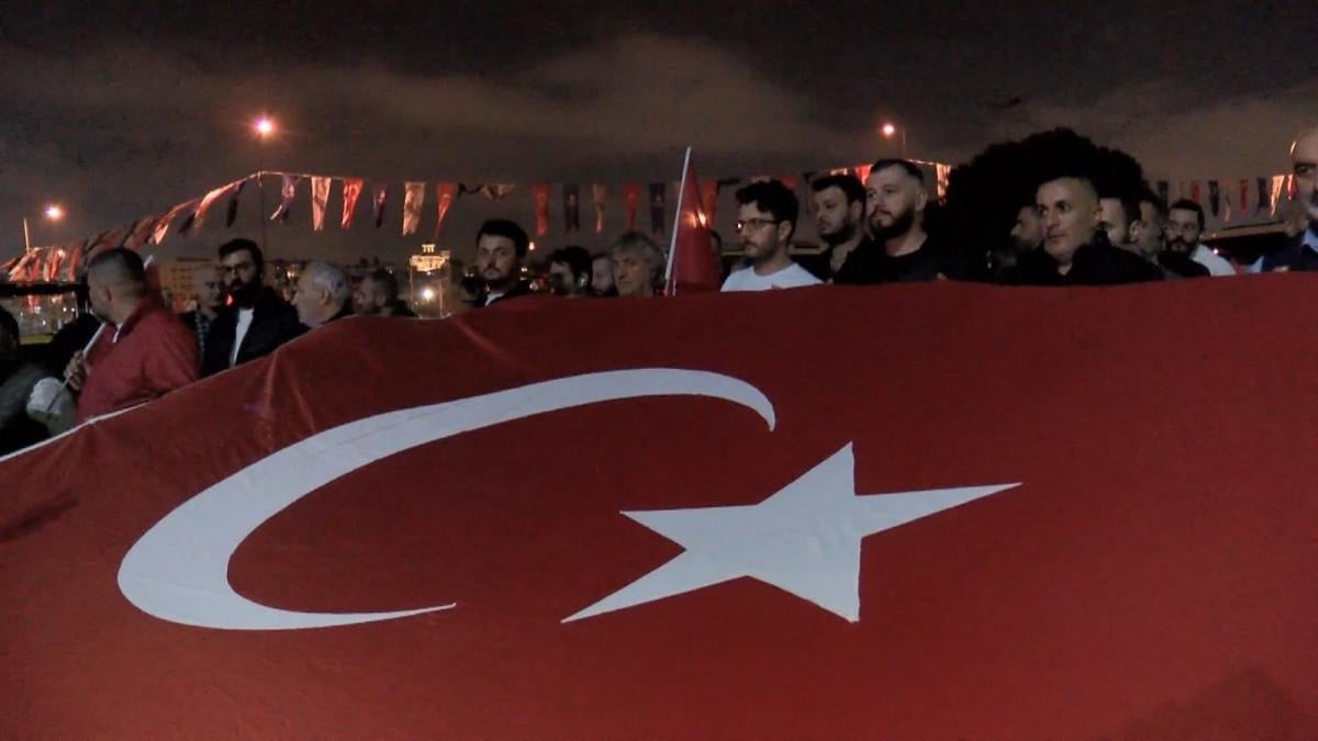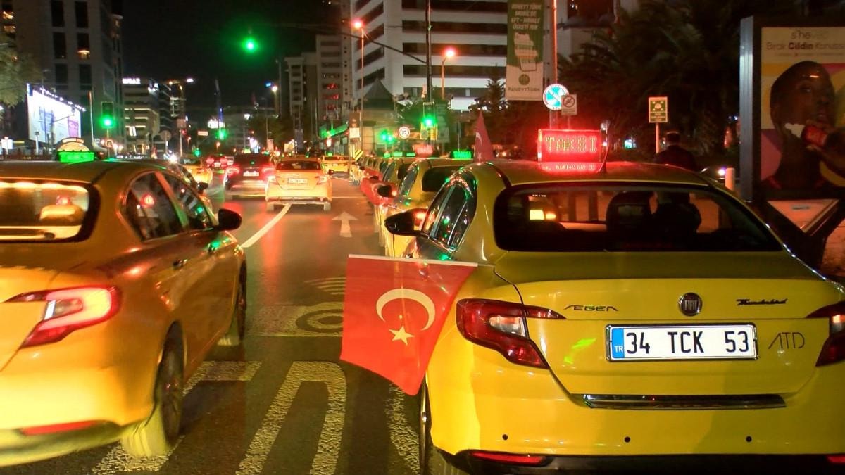 Şişli'de toplanan yüzlerce taksici, araçlarına astıkları Türk bayrakları ile konvoy halinde Yenikapı Etkinlik Alanı'na geldi.