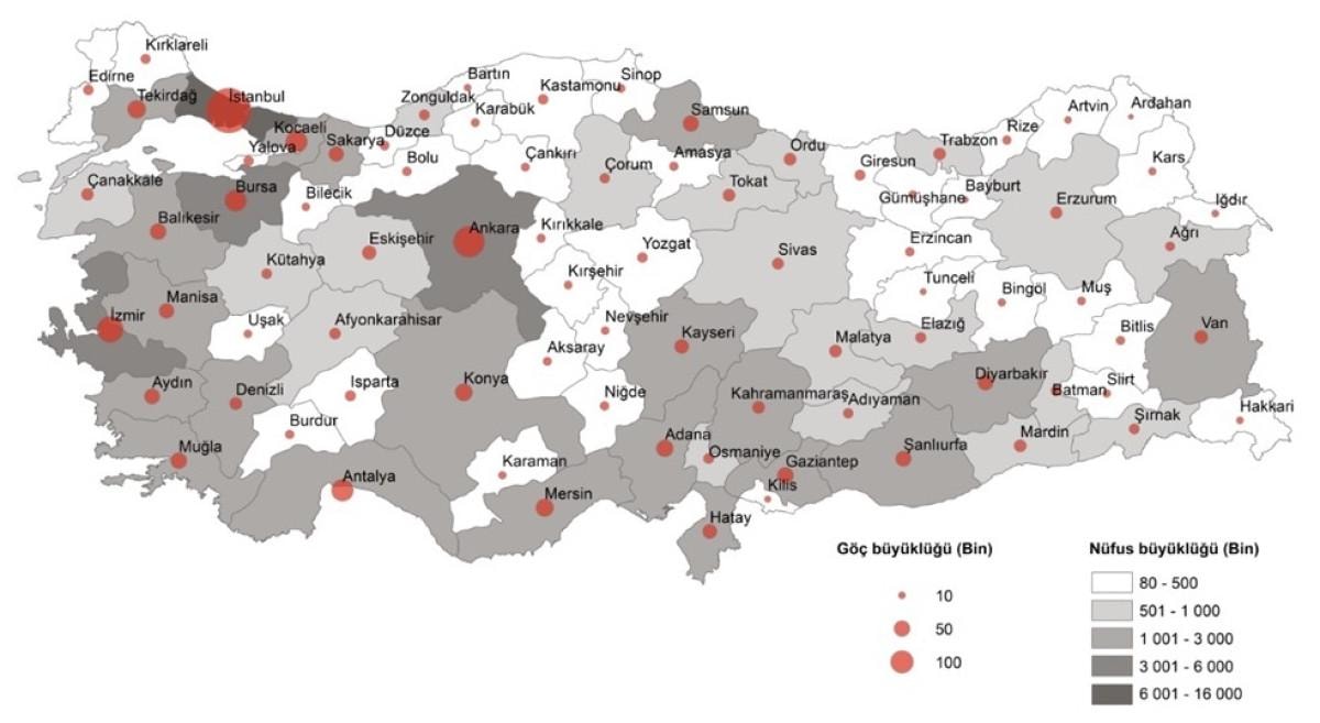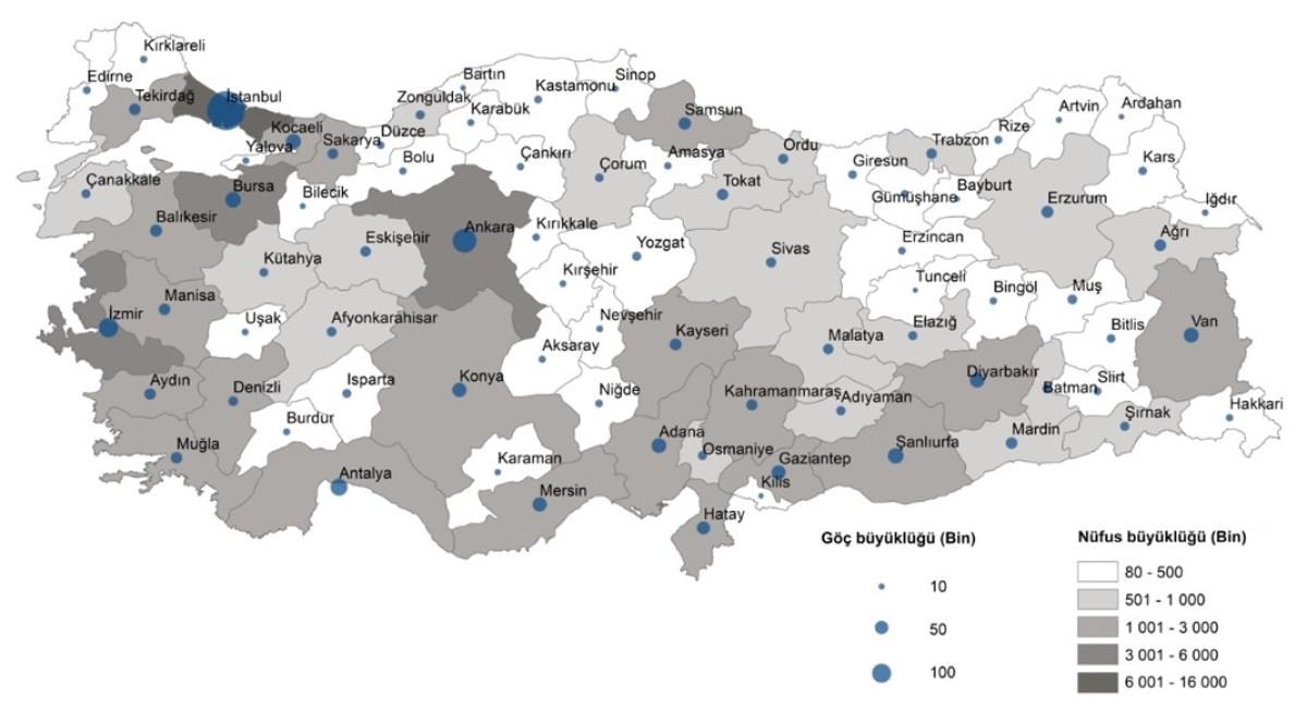 (İllerin aldığı göçün büyüklüğü, 2022)