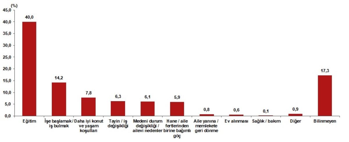 (Göç etme nedenine göre iller arası göç eden nüfus oranı, 2022)