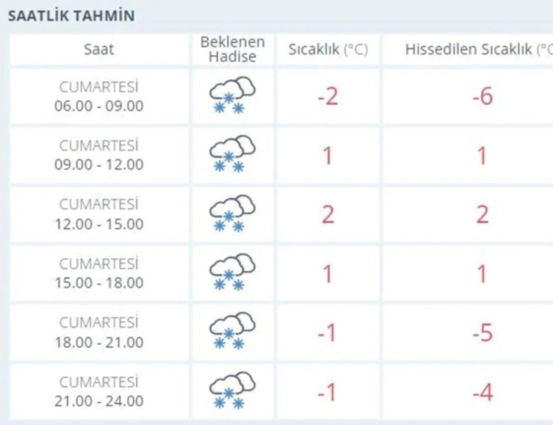 Çok bulutlu, aralıklı kar yağışlı geçeceği tahmin ediliyor. Yağışların; yer yer kuvvetli olması bekleniyor.