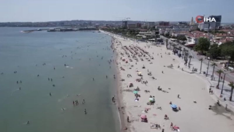 Kurban Bayramı'nda yükselen hava sıcaklığı vatandaşların denizlere koşmasına neden oldu. İstanbul'da da sahiller dolup taştı. Sahildeki bu yoğunluk havadan drone ile görüntülendi.