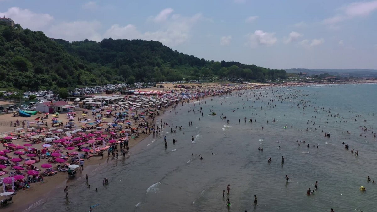 Şile'nin Uzunkum, Ağlayan Kaya, Kızlar Hamamı, Ayazma, Ağva plajlarındaki yoğunluk havadan da görüntülendi.