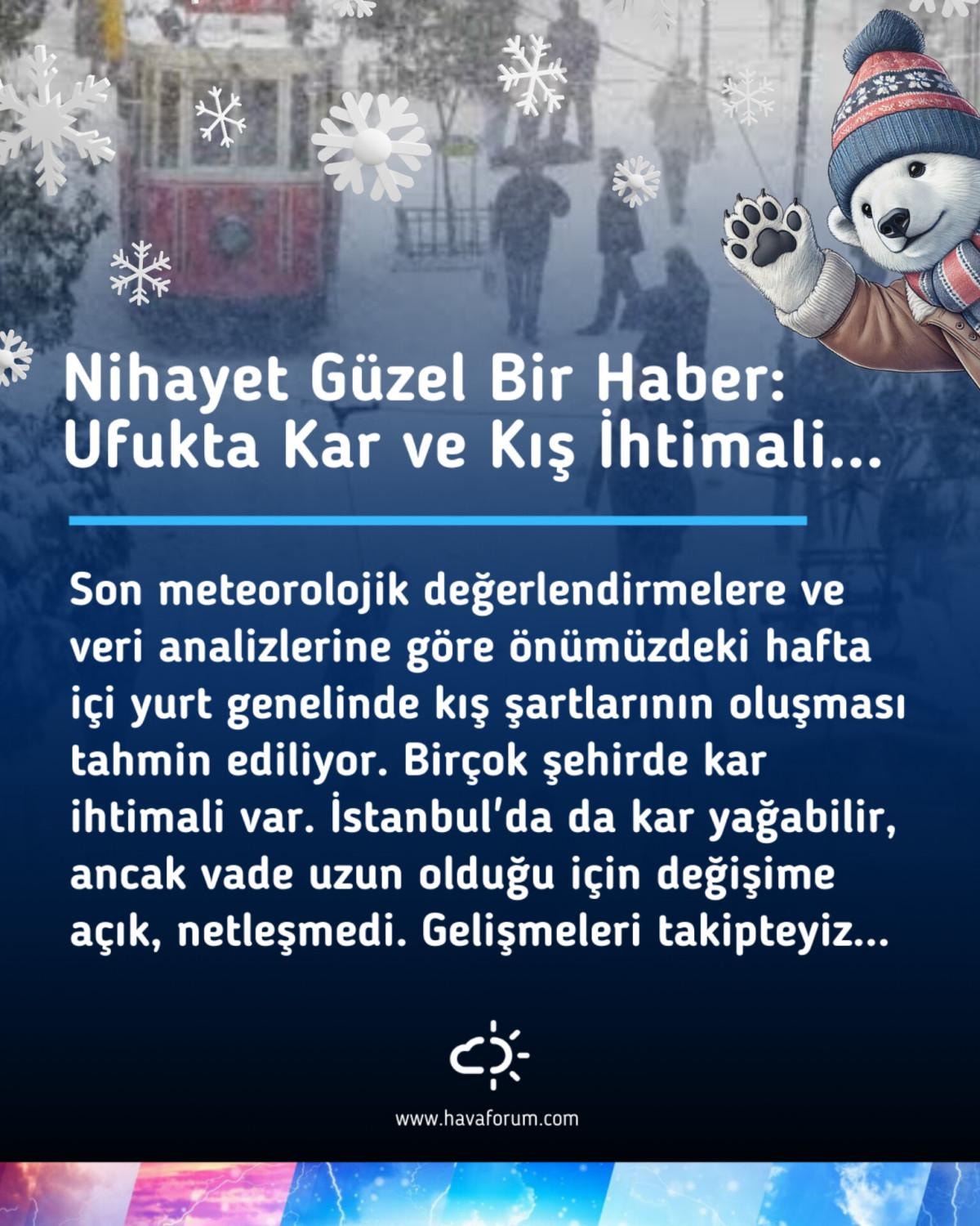 Hava Forum'un paylaşımına göre, haftaya İstanbul için kar beklenebilir.