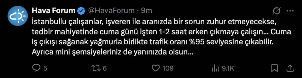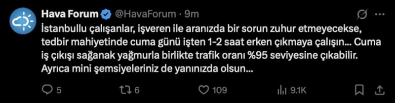 Özellikle iş çıkış saatine de dikkat çeken Hava Forum, paylaşımlarında şu ifadeleri kullandı: