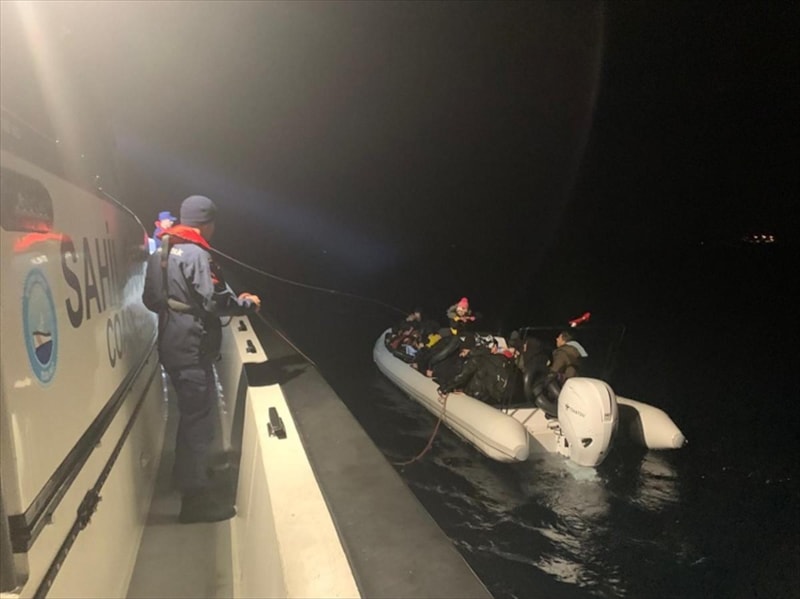 Ekipler, Yunanistan unsurlarınca Türk kara sularına itilen lastik bot içindeki 2'si çocuk 27 düzensiz göçmeni karaya çıkardı.
