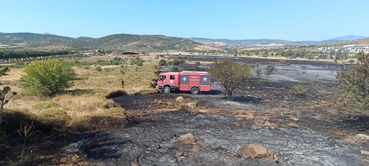 İzmir'in Foçaköy ile Foça Açık Ceza İnfaz Kurumu arasındaki otluk alanda, saat 14.00 sıralarında yangın çıktı.