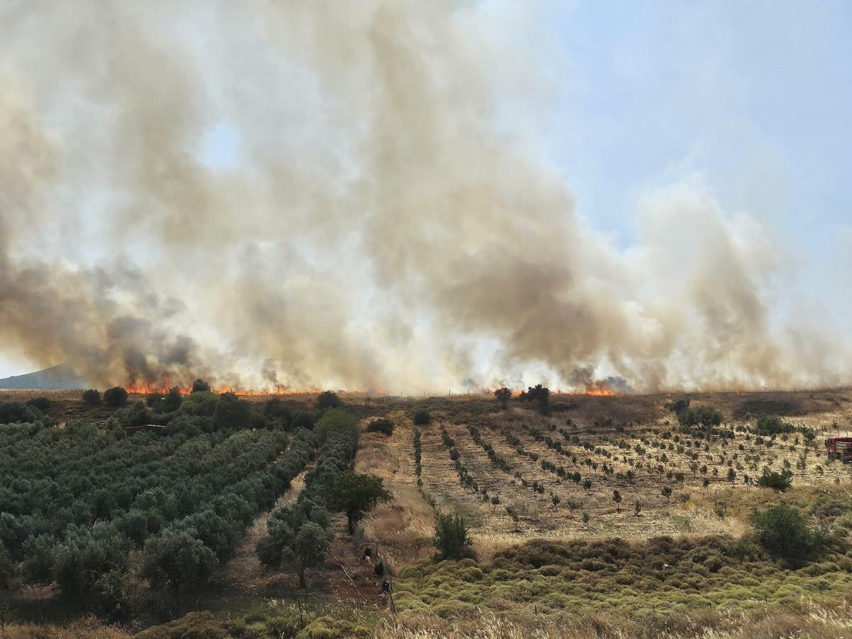 Alevler, maki ve zeytin ağaçlarıyla kaplı alana da sıçradı.