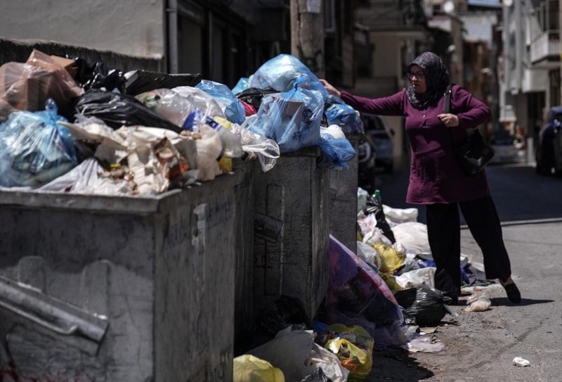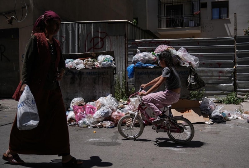 Biriken çöplerin kaldırım ve yollara taştığı görüldü.