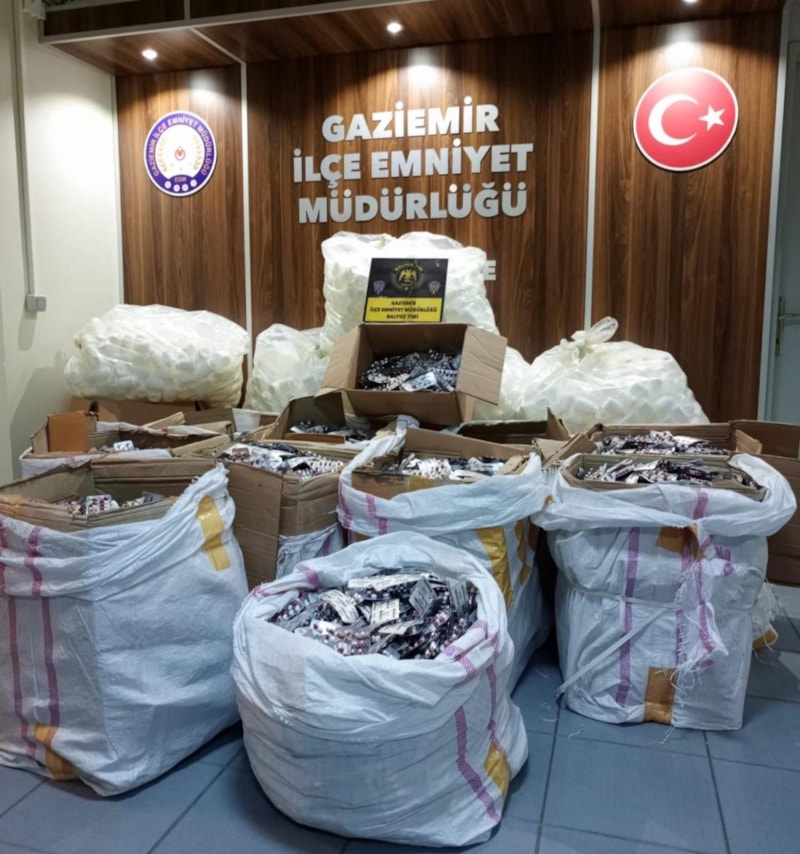 İzmir'de şüphe üzerine bir araçta yapılan incelemede, çuval ve koliler içerisinde toplam 126 bin 448 adet uyuşturucu nitelikli sentetik hap ele geçirildi. Olayla ilgili 1 şüpheli gözaltına alındı.