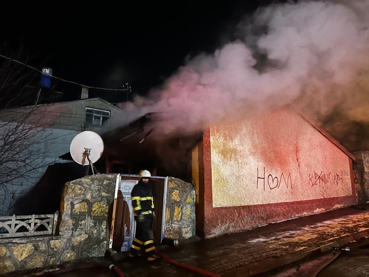 Sivas'ta Gültepe Mahallesi Gültepe Caddesi üzerinde bulunan müstakil bir evde elektrikli sobanın devrilmesiyle evde yangın çıktı.