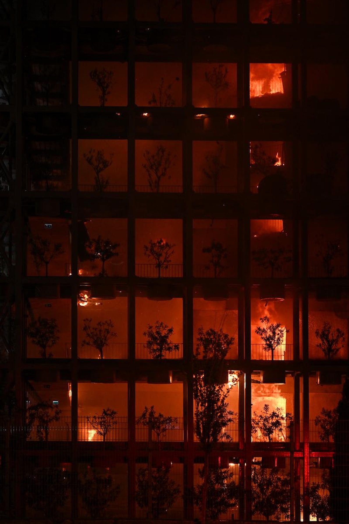 Zaman zaman patlama seslerinin duyulduğu yangın çıkan binanın sakinleri ekiplerce tahliye edildi.