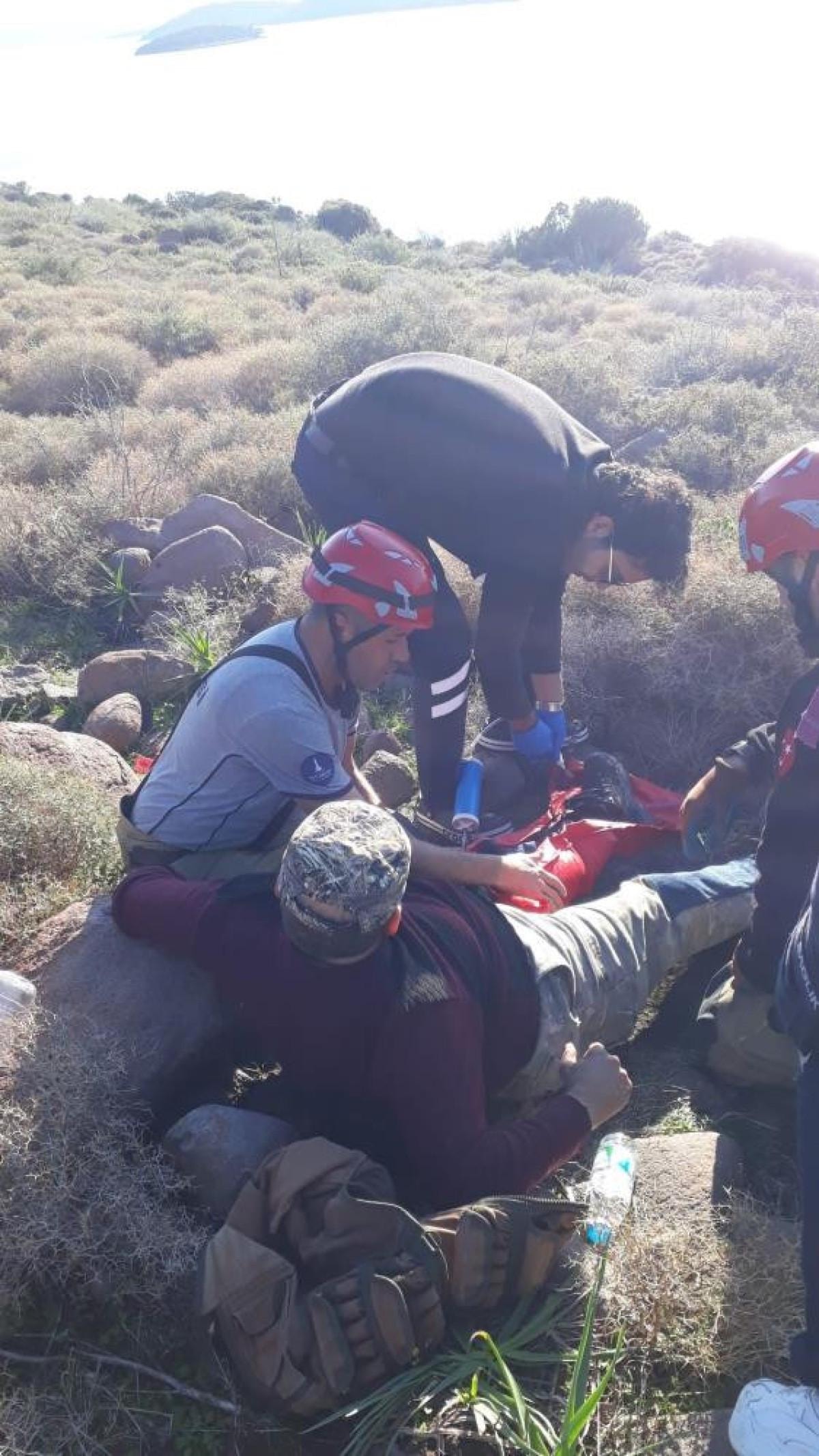 İzmir Çeşme ilçesi Ildır Mahallesi'ndeki sarp kayalık arazide avcılık yapan bir kişi, kayalıktan düşerek sol bacağından yaralandı.