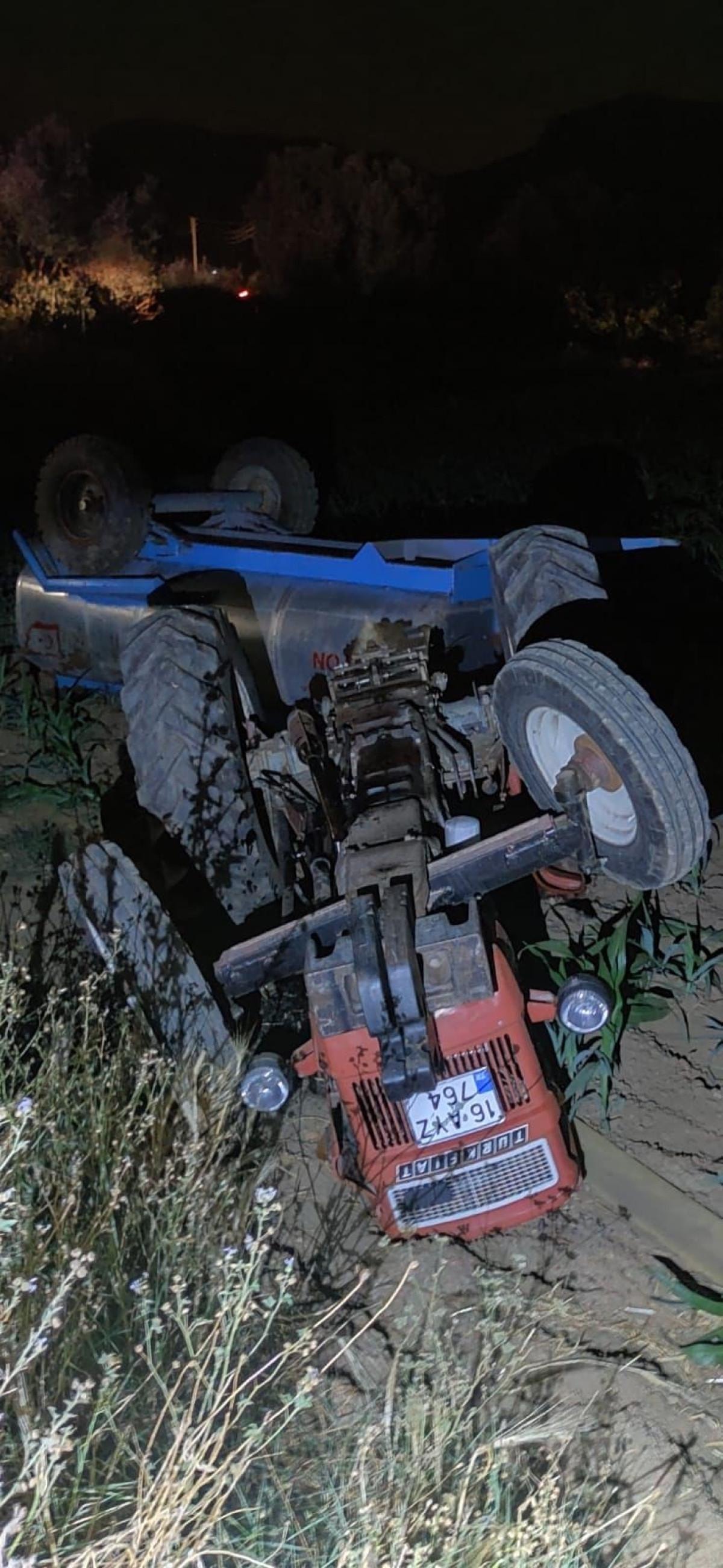 İzmir'in Tire ilçesinde dün akşam saatlerinde Tire’ye bağlı Akçaşehir Mahallesi yakınlarında, 16 AYZ 764 plakalı traktörle hareket halinde olan Kadir Siner (56) direksiyon hakimiyetini kaybetti, kontrolden çıkan traktör şarampole devrilerek ters döndü.