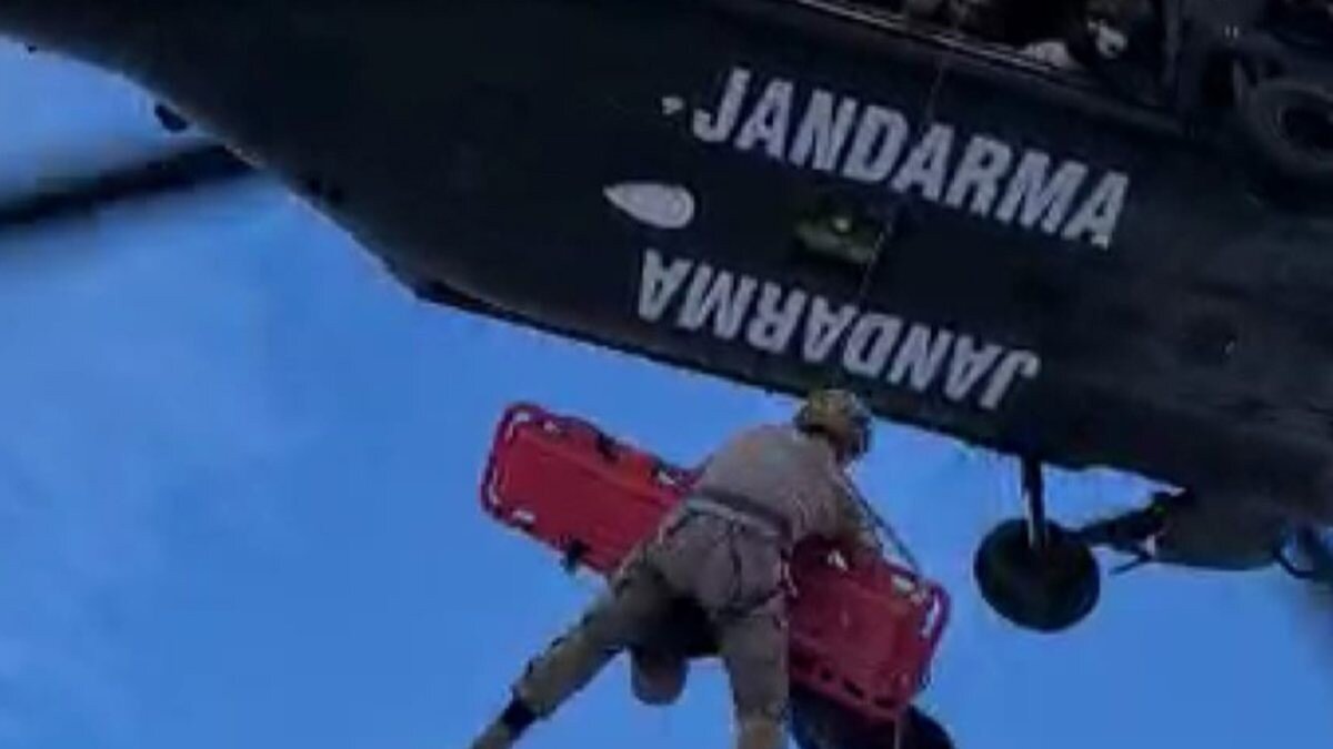Jandarma operasyona dair görüntüleri paylaştı. Görüntülerde; sol omuz, sağ el bileği ve sağ ayak bileği kırık olan Rüştü K. (60), AFAD ve jandarma ekiplerince sedyeye alındıktan sonra, sedyenin helikopterden sarkıtılan makaraya bağlanması ile yanında bir jandarma personelinin refakatiyle helikoptere alındı.