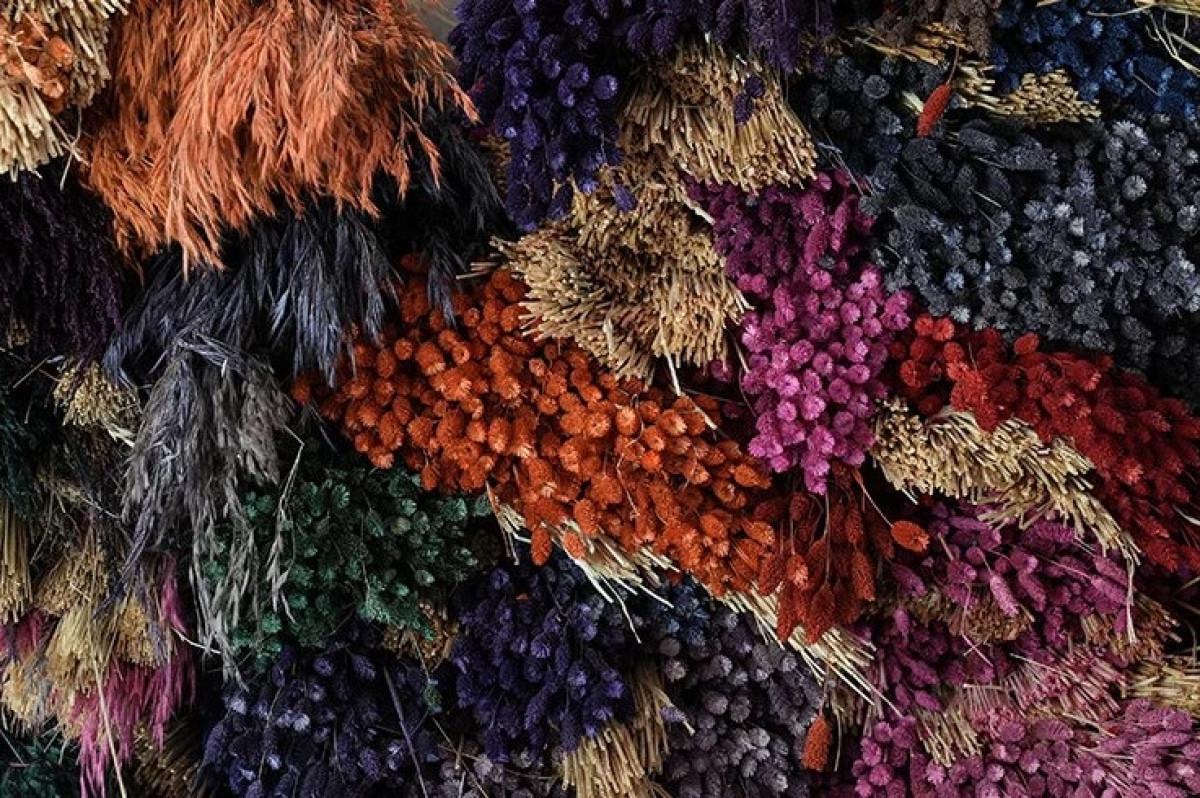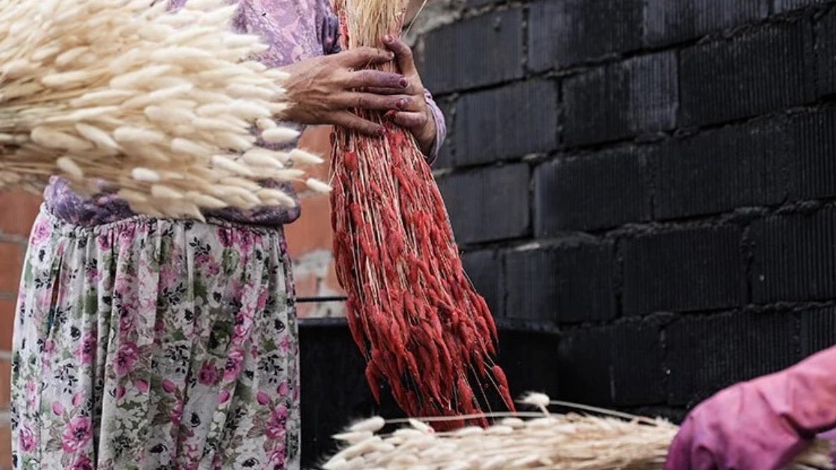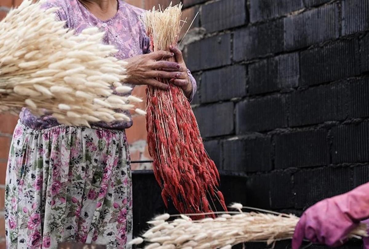 Dezenfekte edilerek evlerin önünde kurutulan bitkiler, yaprak ve tohumlarını korumak için özenle işleniyor ve ardından rengarenk boyalarla kazanlarda boyanıyor. Özellikle iç mekan dekorasyonunda talep gören bu ürünler, paketlenip sipariş alan müşterilere gönderiliyor.