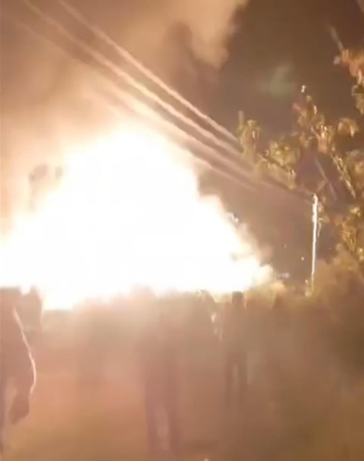 Görüntüde, patlama sesini duyan vatandaşların korkuyla kaçtığı ve alevlerin metrelerce yükseldiği anlar görüldü.