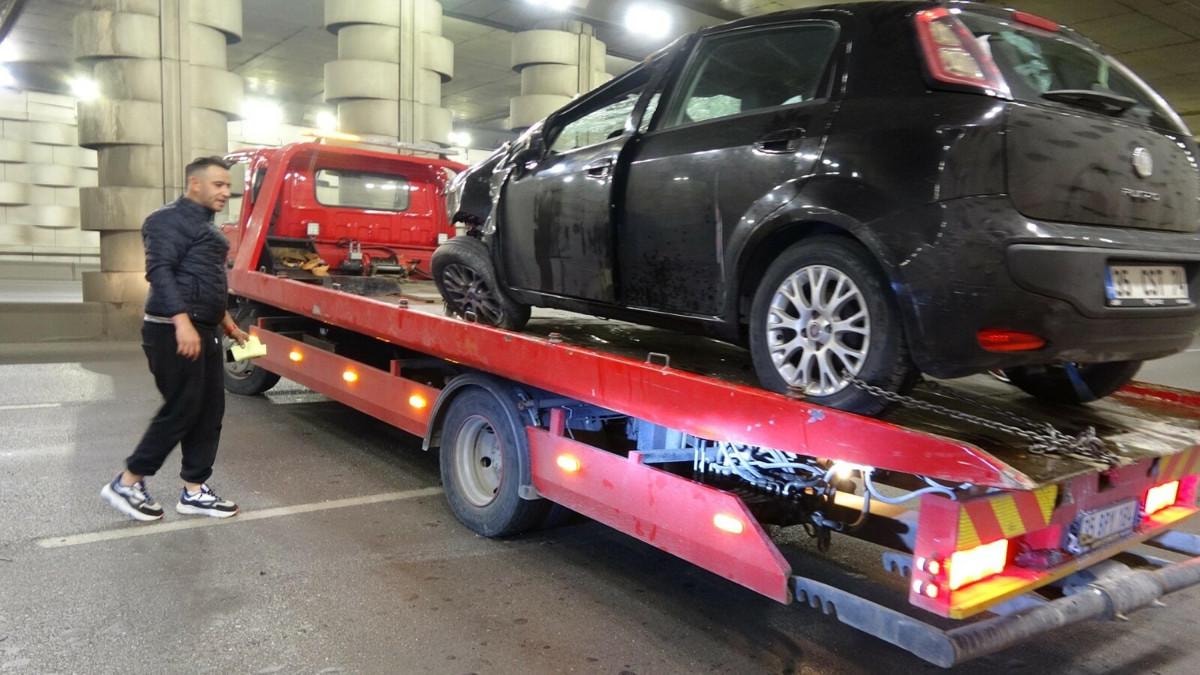 Takla atarak demir yığını haline dönüşen otomobilin çekici yardımıyla kaldırılması ve yapılan temizlik çalışmasının ardından trafik akışı normale döndü.