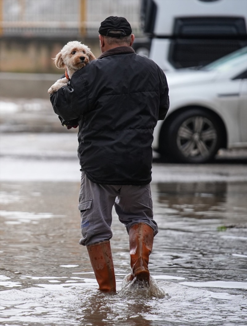 Zaten yoğun olan araç trafiği, sağanakla birlikte tamamen kilitlendi. Sürücüler uzun süre araçlarında beklemek zorunda kalırken, karşıdan karşıya geçmeye çalışan yayalar da zor anlar yaşadı.
