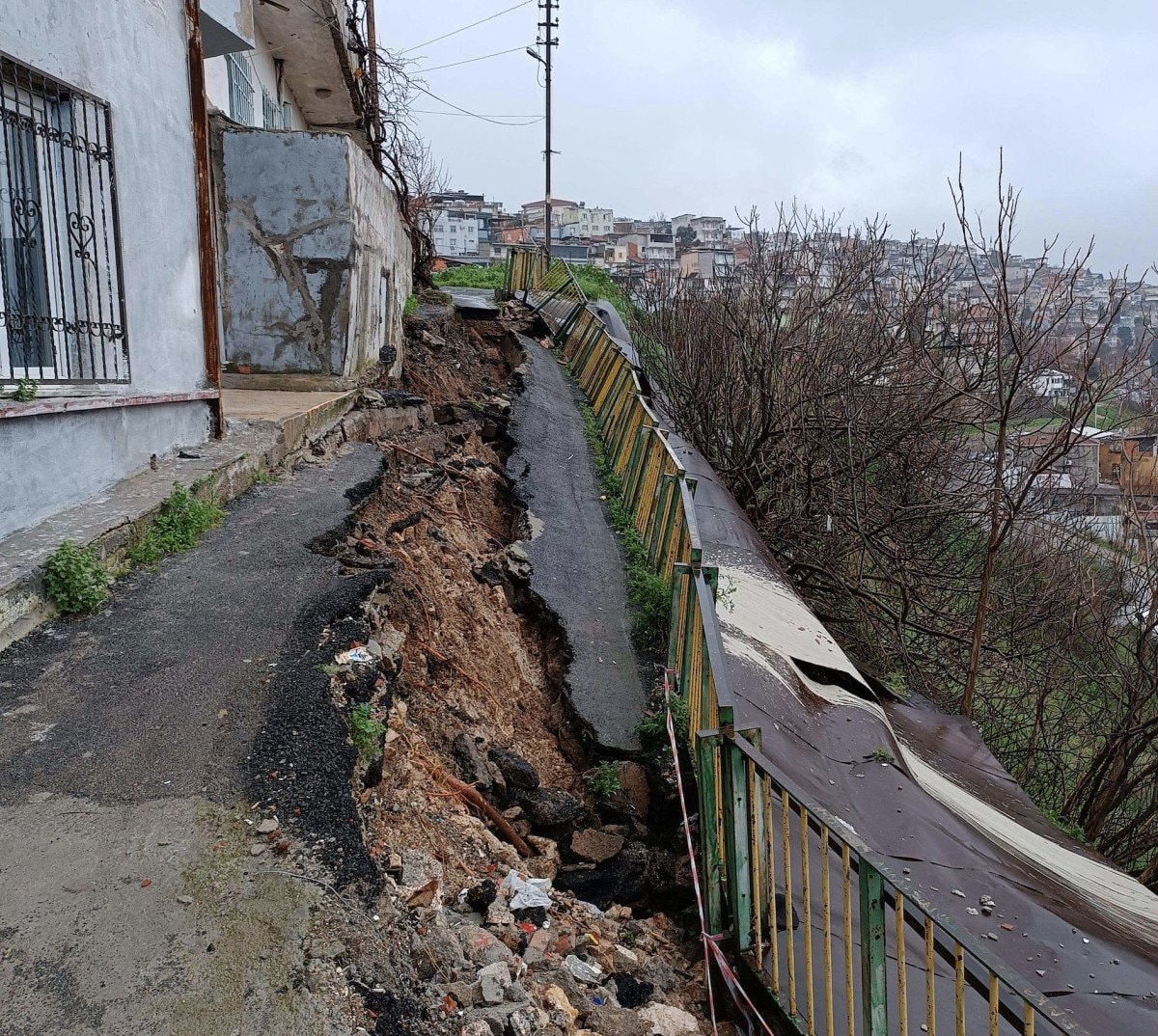 - Çöken yolun çevresindeki iki ev tehlike altına girdi.