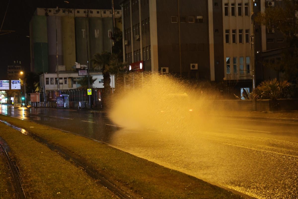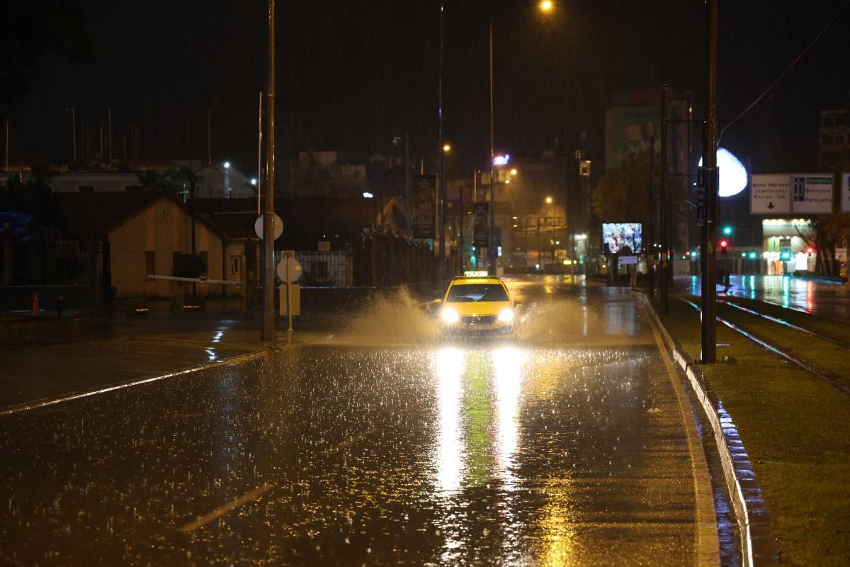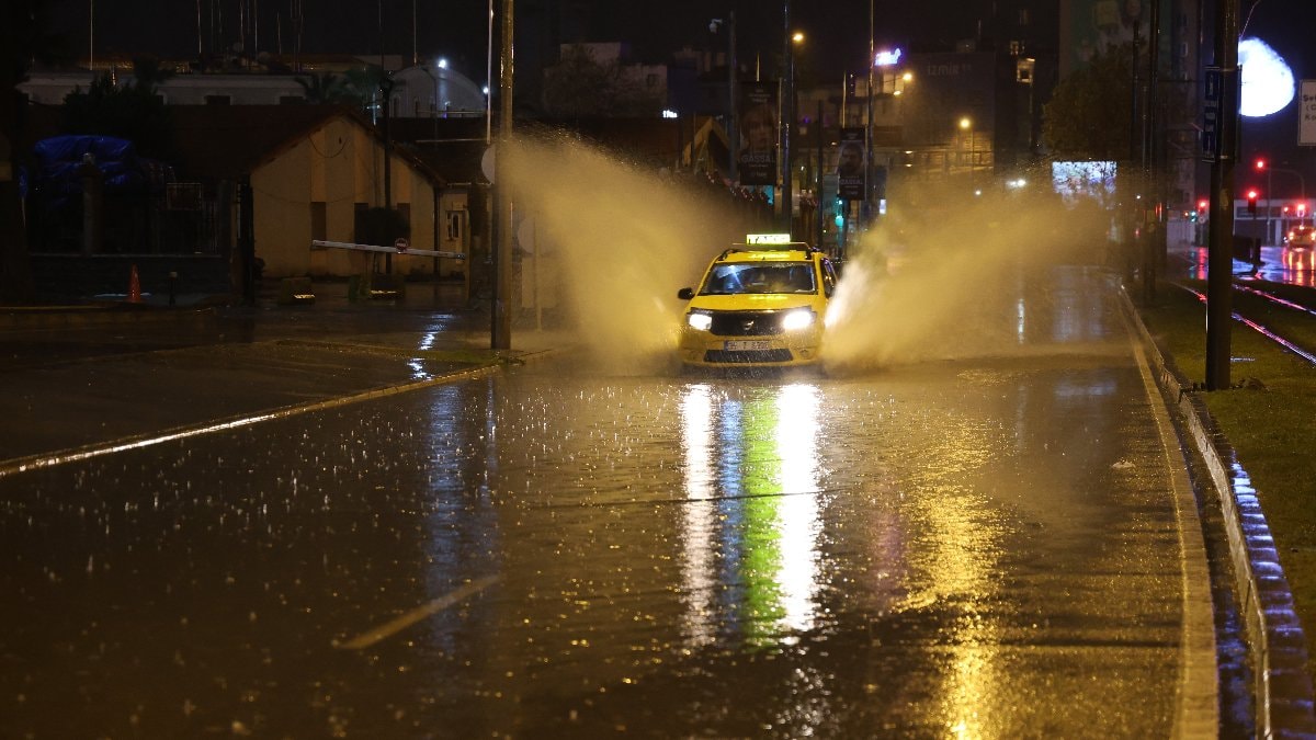 Meteoroloji Genel Müdürlüğünün İzmir için yapmış olduğu gök gürültülü sağanak yağış ikazının ardından, kentte gece saatlerinde yağış etkisini artırdı.