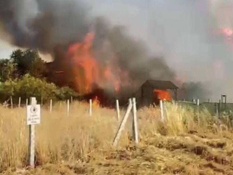 Alevler kısa süre sonra genişleyerek bölgedeki zeytin bahçesine ve evlere sıçradı.