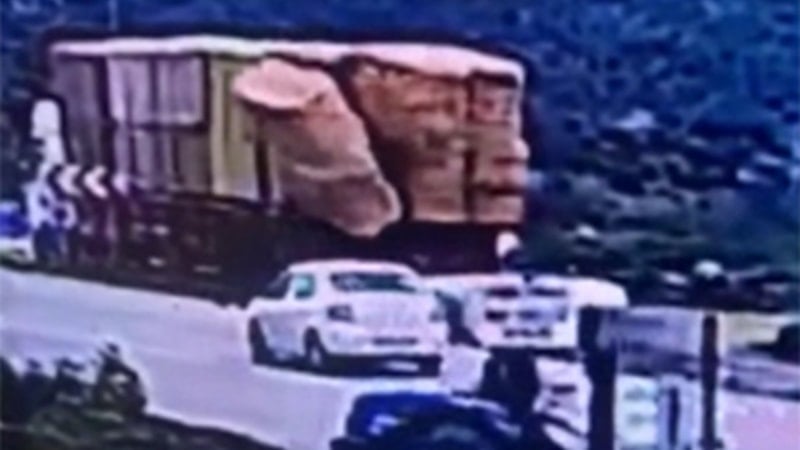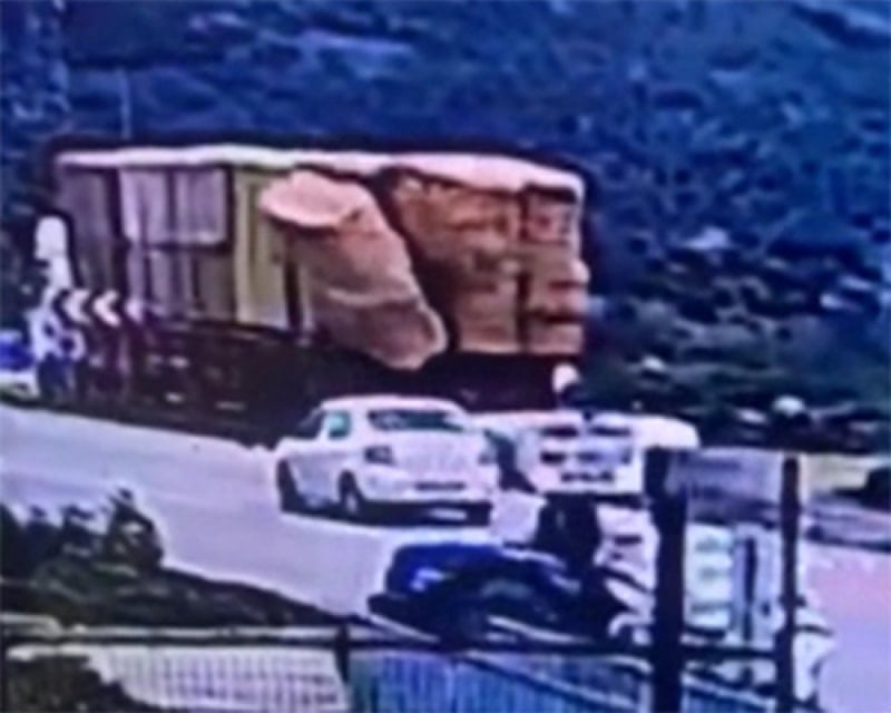 Görüntülerde Avcı'nın yol kenarında yürüdüğü sırada yanından geçen tırdaki balyaların üzerine düşmesi ve balyaların altında kalması yer aldı.
