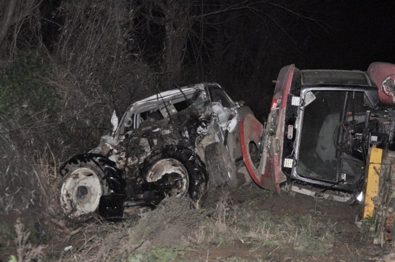 İzmir'in Ödemiş ilçesinde Mahmut B. (51) yönetimindeki 20 L 7889 plakalı traktör ile karşı yönden gelen Ege A. (19) idaresindeki 35 ALB 227 plakalı pikap, Ovakent Mahallesi Yanıkkırı mevkisinde çarpıştı.