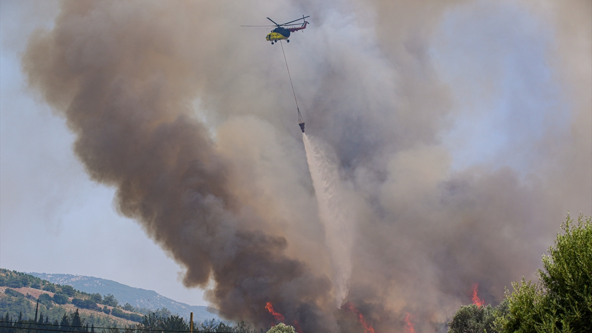 Yapılan paylaşımda, yangına, 6 uçak, 6 helikopter, 20 arazöz, 3 iş makinesi,148 personel ile müdahale edildiği bildirildi.