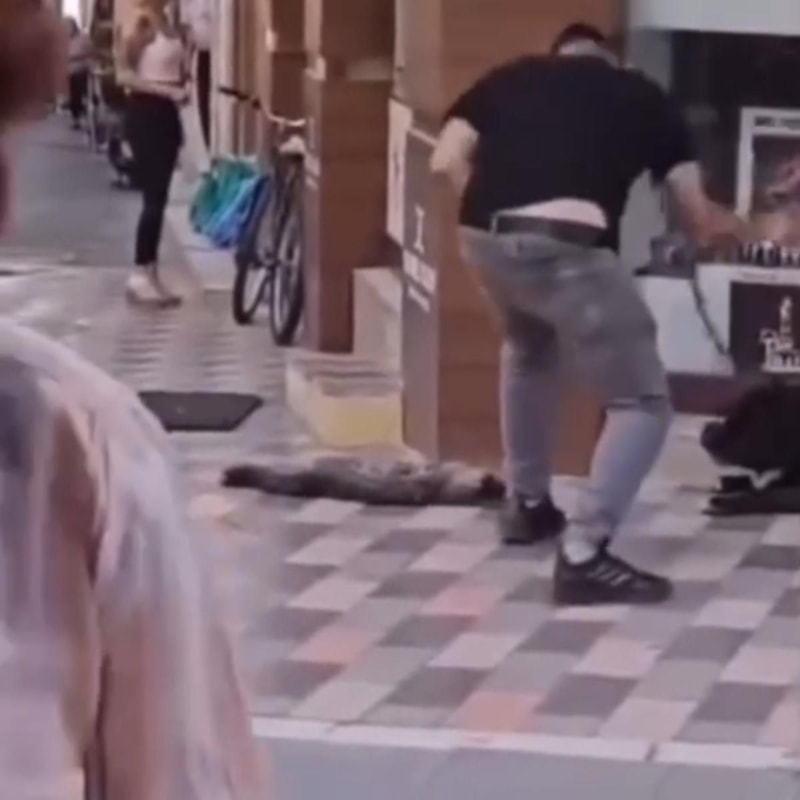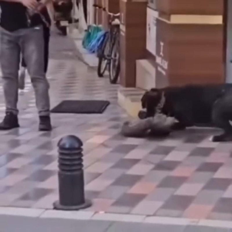 Görüntülerde köpeğin kediyi boğazından ısırarak savurduğu ve daha sonra köpeğin sahibi tarafından vurulan sert tekmeler ve zincirle etkisiz hale getirildiği anlar yer aldı.
