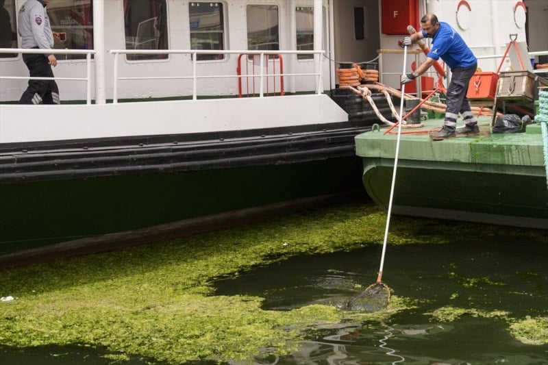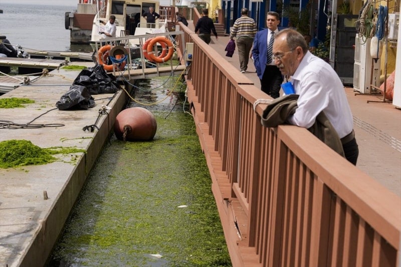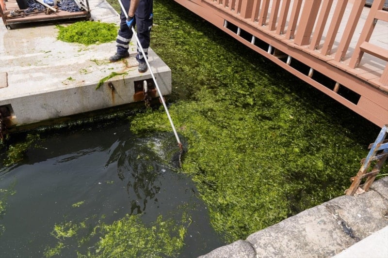 Deniz yosunları, Pasaport İskelesi civarında yeşil örtü oluşturdu.