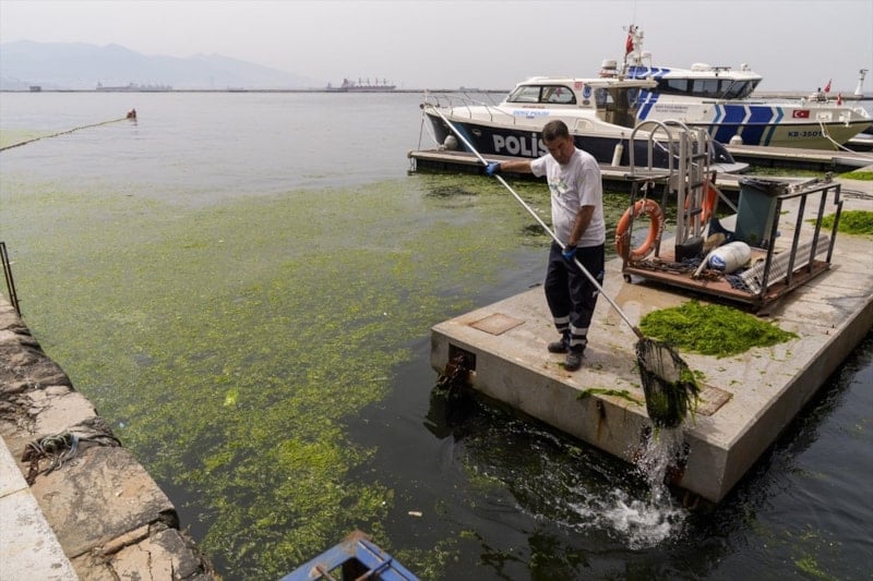 Sık sık çöp dağlarıyla, su kesintileriyle gündeme gelen İzmir'de yosun sorunu tekrar gündeme geldi.