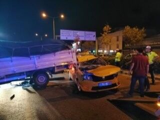 Arkadan gelen 35 FC 609 plakalı ticari taksi, duramayarak kamyonette çarptı. Meydana gelen kazada, kamyonette ve ticari takside bulunan 4 kişi yaralandı.