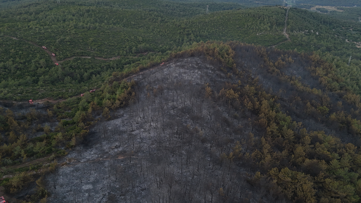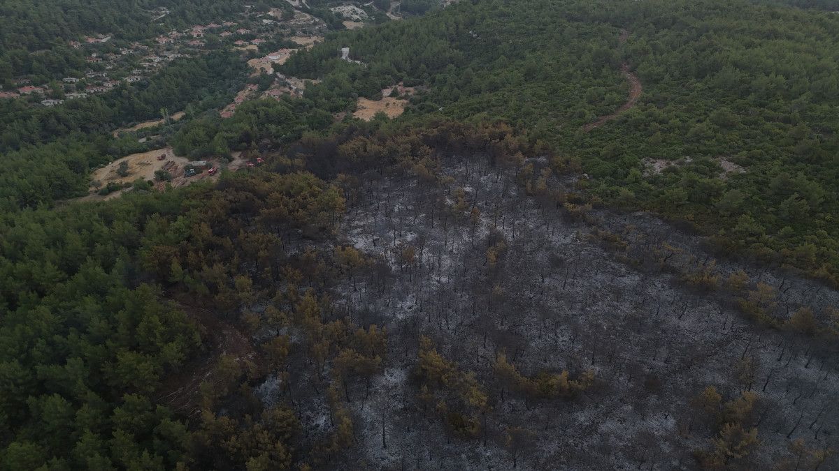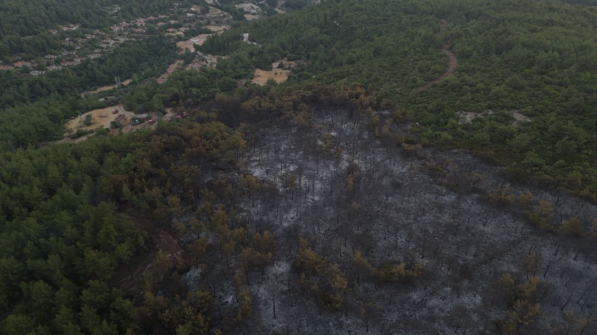 Ekiplerin söndürme çalışmaları sürerken, yangında oluşan zarar gün ağarınca ortaya çıktı. Bölge drone ile görüntülendi.