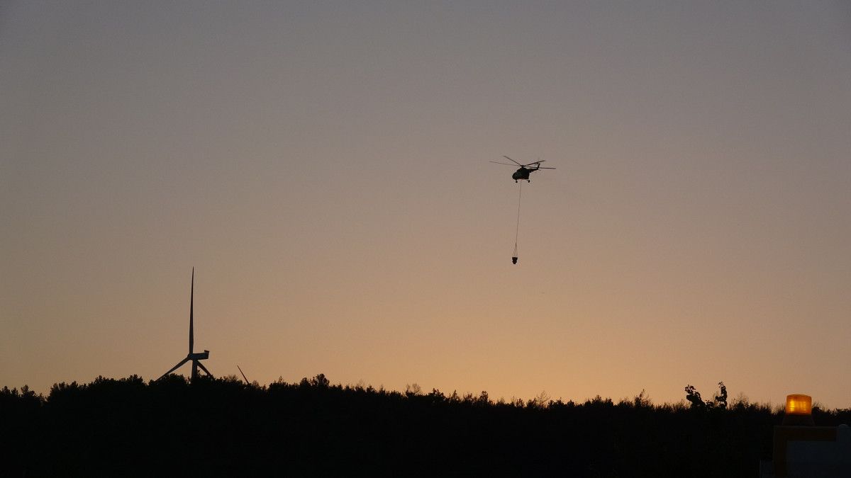 Bugün sabahın ilk ışıklarıyla birlikte hava araçları, alevlere yeniden su atmaya başladı.