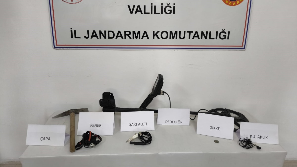 Ardından araçta arama yapan ekipler el dedektörü, şarj cihazı, fener, çapa, kulaklık ile gözaltına alınan M.Ö., isimli şahsın çantasında tarihi eser niteliğindeki sikke ele geçirdi.