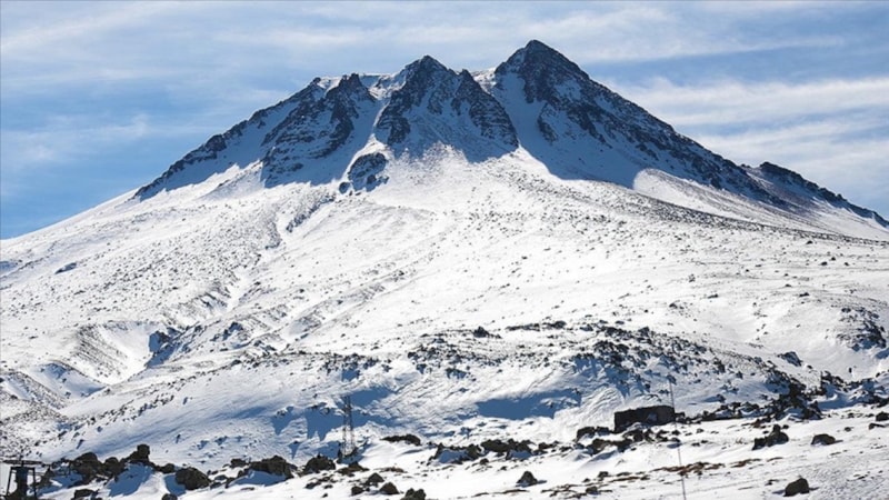 Aksaray ve Niğde il sınırları içerisinde yer alan ve volkanik bir dağ olan Hasan Dağı'nın yüksek kesimleri, kar yağışının ardından beyaza bürünen manzarası ile büyülüyor.