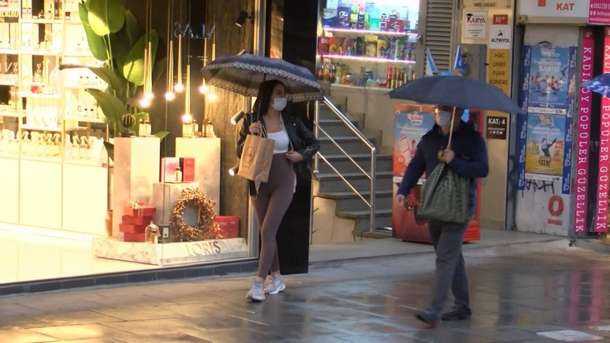 Kadıköy Meydanı'nda kimi vatandaşlar şemsiyeleriyle dışarıda olurken kimileri ise yağmura hazırlıksız yakalandı.