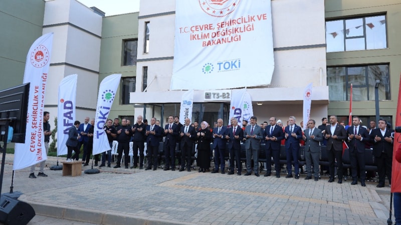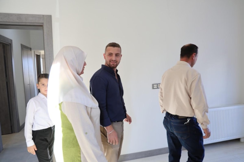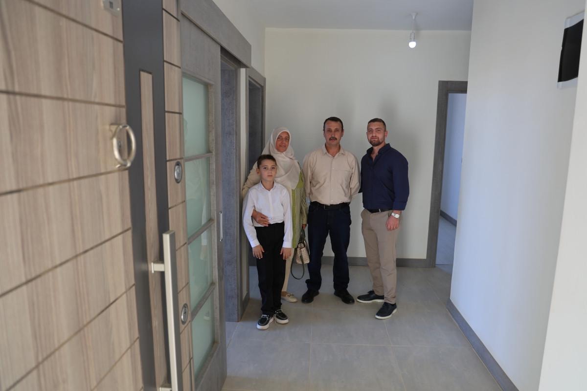 Anahtarı teslim alan aile, "Evimiz ağır hasar almıştı, yıkılacak yeni evimize kavuştuk. Herkese çok teşekkür ederiz, Allah razı olsun" dedi.