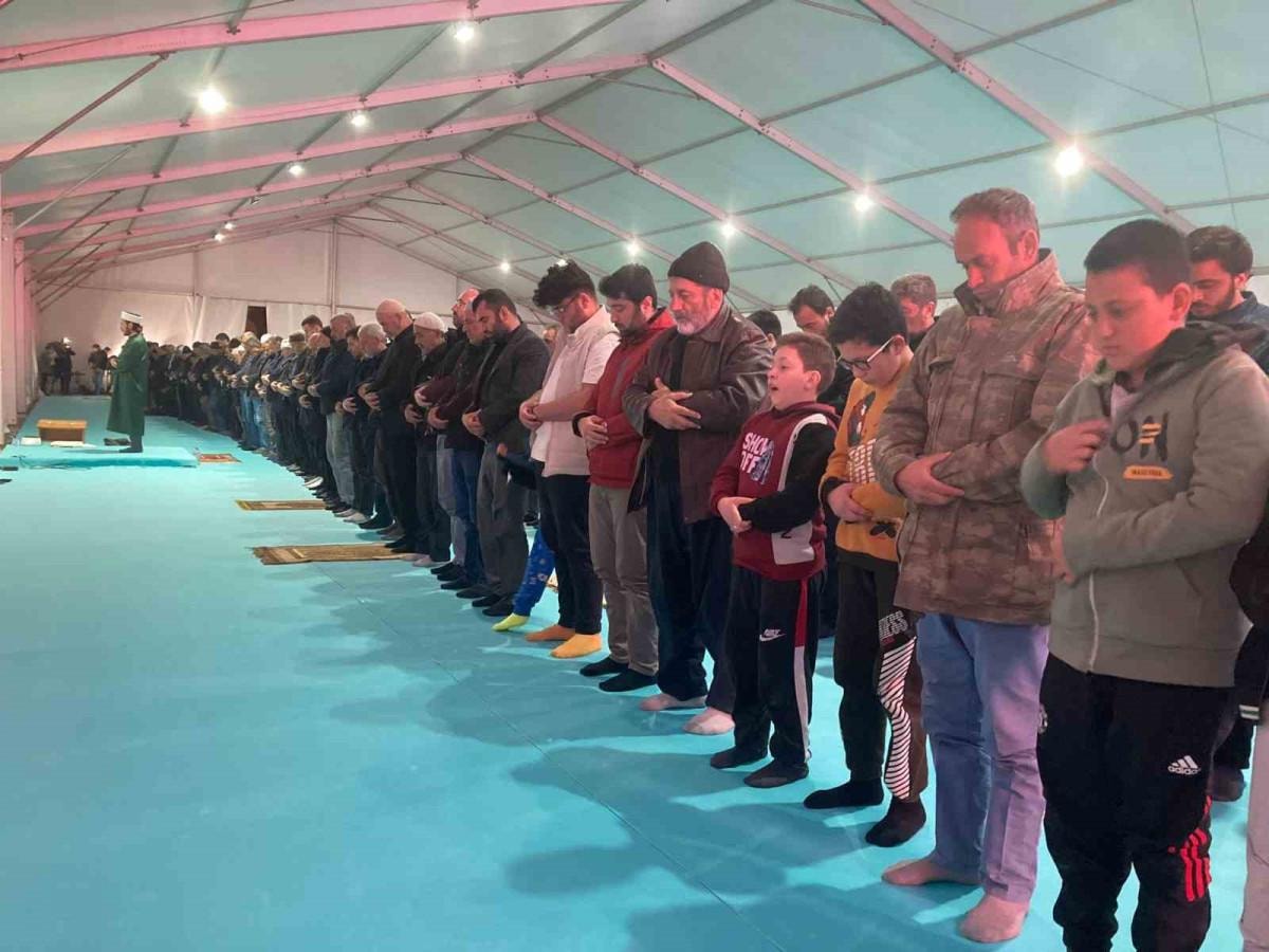 Namaz sonrası okunan Kur’an-ı Kerim ve dualarla eller semaya açılarak depremde hayatını kaybedenler için dualar edildi.