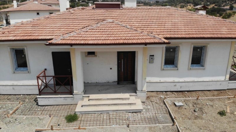 Drone ile görüntülenen köy konutları bölgesinde çalışmaların son aşamaya geldiği görüldü.