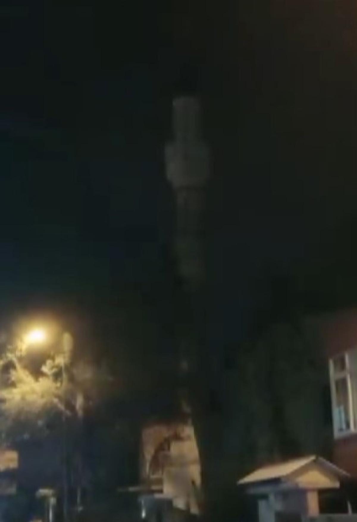 Akşam saatlerinde devrilen minare, herhangi bir can kaybına veya yaralanmaya neden olmadı.