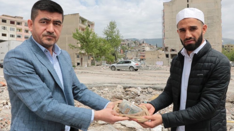 3 çocuğuyla birlikte enkazda kalarak hayatını kaybeden arkadaşının vefat ettiği binanın enkazına gelen 2 kişi, burada poşet içindeki 57 bin 805 doları fark etti. Ardından hemen emniyete gidip parayı polise teslim etti.