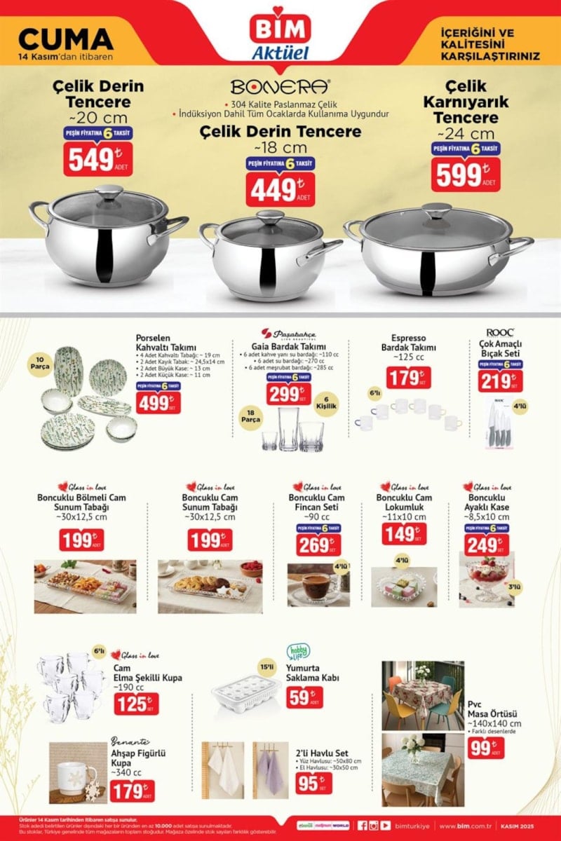 İşte 14 Kasım BİM aktüel kataloğundaki tam liste ve fiyatlar: