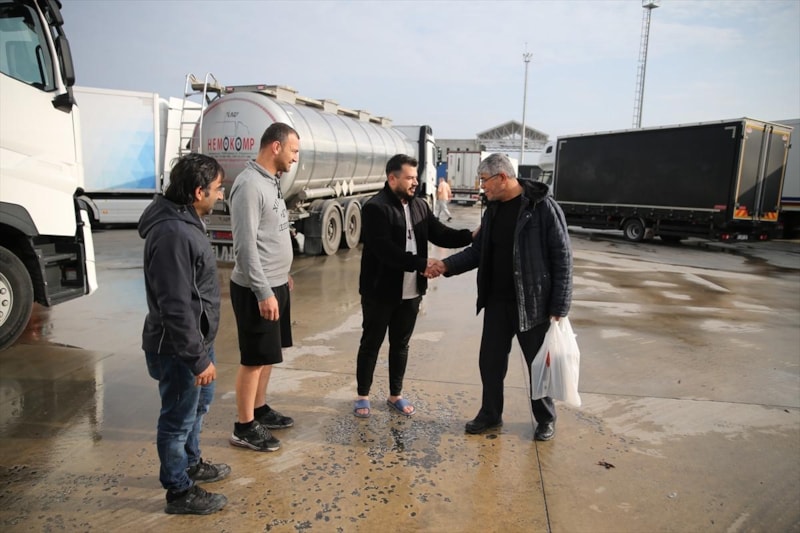 Edirne Kapıkule sınır kapısındaki camide bayram namazını eda eden tır şoförleri, meslektaşlarıyla bayramlaşarak bu özel günü birlikte karşıladı. Ancak sevdiklerinden uzakta olmanın hüznünü içlerinde taşıyan sürücüler, namaz sonrası ailelerini telefonla arayarak bayramlarını kutladı, seslerini duyarak özlemlerini bir nebze olsun dindirmeye çalıştı.